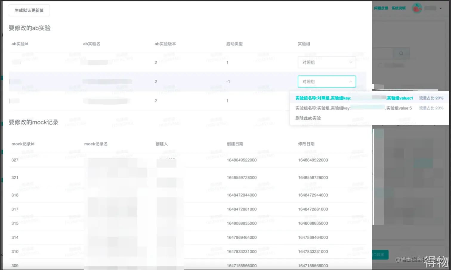 - 在录制mock数据初期,我们遇到过部分带有搜索商品操作的脚本会执行失败,经排查发现是端上的实验组代码已经调整,而ab配置下发的接口由于mock已经被固定,这导致原先录制的脚本无法适配新的实验组的代码。为此我们引入了事件变更监听,并过滤出所有来自ab管理系统的变更事件,再依据事件详情中的ab实验id去ab管理系统获取最新的配置信息,来自动生成用于批量更新mock数据的推荐修改结果。