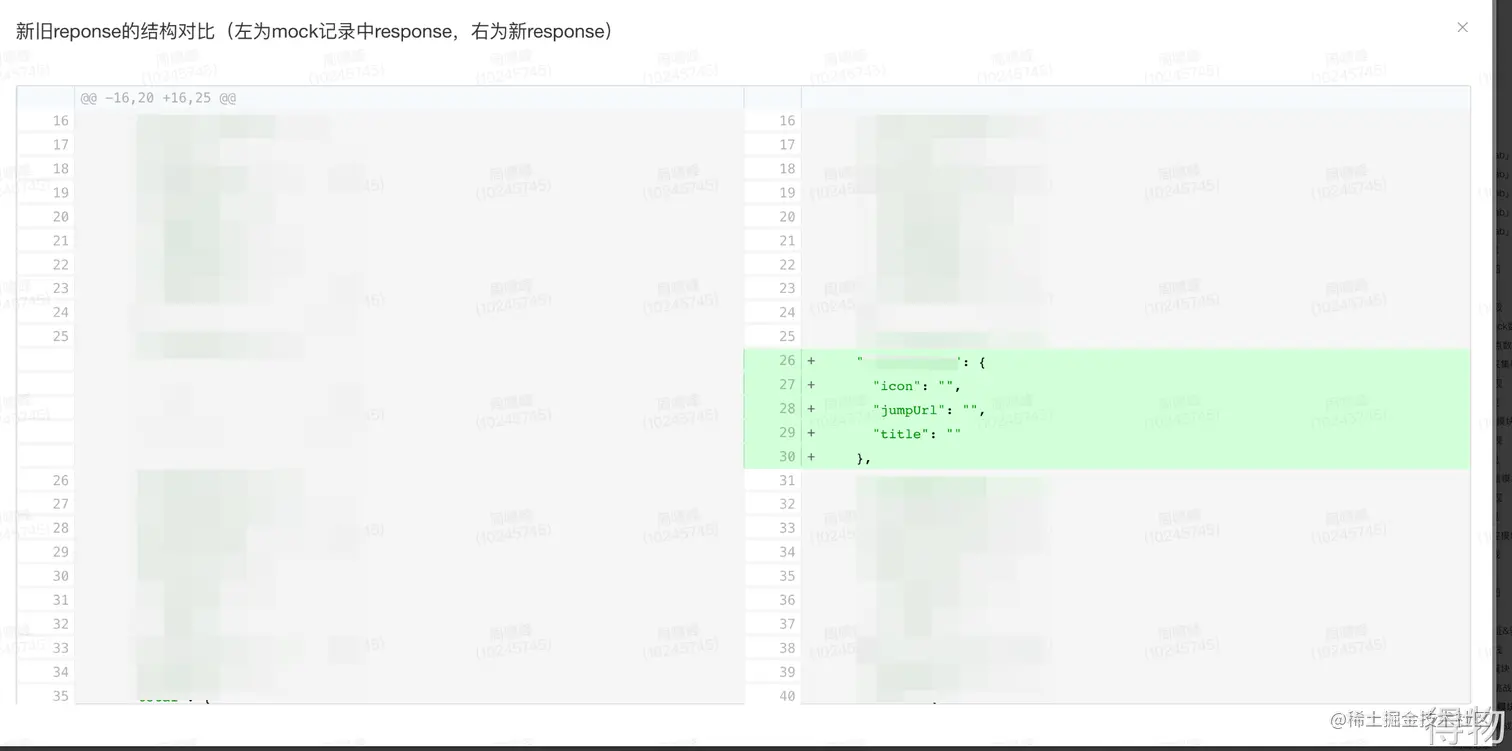 - 接口数据作为埋点数据的重要组成部分,往往决定着自动化回归的稳定性,因此我们还实现了对接口变更的自动检测,通过比对接口真实数据和mock数据的key值,寻找数据结构上的差异,生成变更的记录和修改建议。