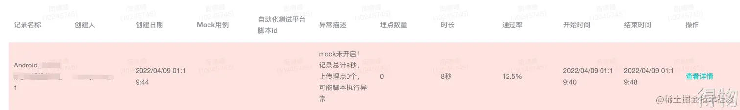 - 即测试记录中的埋点数量和录制的时长比例异常,正常比例约大于1:1,如果出现埋点数量小于录制时长秒数,一般为脚本异常,需要人工排查。