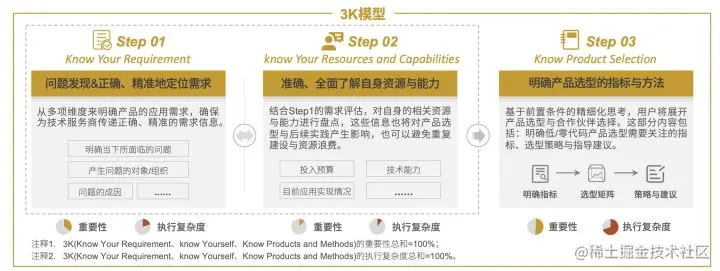 针对企业选型低代码/零代码产品的疑虑,报告还提出“构建敏捷开发能力的实践指导框架(3K模型)”,帮助行业用户构建体系化的评估逻辑。