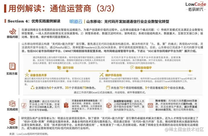 在报告中, 明道云入围“2022年中国低代码/零代码行业综合影响力企业TOP15”,并在通信运营商领域作为唯一案例代表厂商。