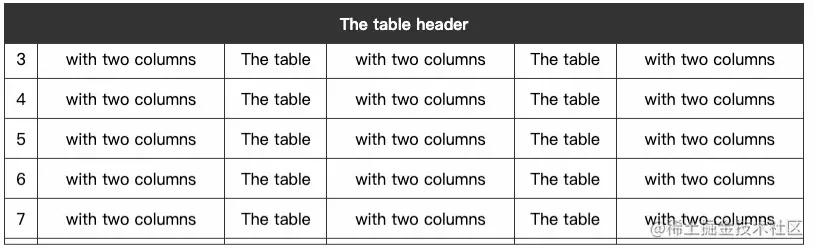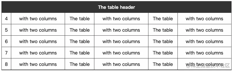 <th>The table header</th>