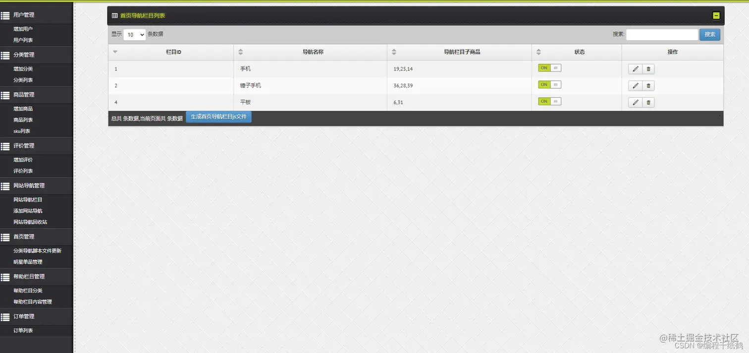 后台数据管理功能,主要完成对前端页面所产生的相关业务数据进行管理。比如对注册用户的管理、商品的管理、用户的订单管理、产品分类的管理等等。后台管理可以有效的帮助网站运营者查看相关信息,了解每天的产品销售情况,订单情况,以便于及时的进行销售策略的调整等等,是至关重要的一环