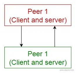在此模式中,单个组件称为对等组件peer。对等组件既可以作为客户端向其他对等组建请求服务,也可以作为服务器向其他对等组件提供服务。对等组建可以充当客户端或服务器,也可以同时充当两者,它可以随时间动态地更改其角色。