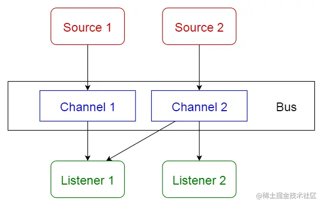 该模式主要处理事件,有4个主要组件;事件源、事件监听器、通道和事件总线。事件源将消息发布到事件总线上的特定通道。侦听器订阅特定的通道。当消息发布到它们订阅过的通道时,侦听器会得到通知。