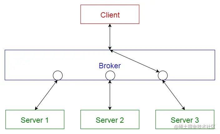 服务器将其功能(服务和特征)发布到代理。客户端向代理请求服务,然后代理根据注册中心将客户端请求重定向到合适的服务。