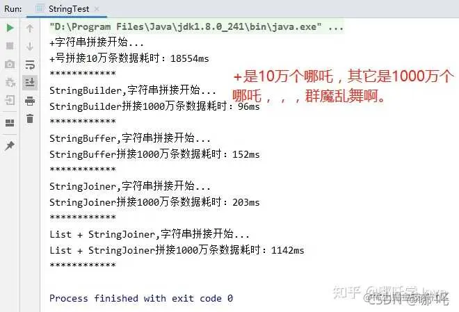 System.out.println("StringBuilder拼接1000万条数据耗时:"+(end-start)+"ms");//168ms,173ms,239ms