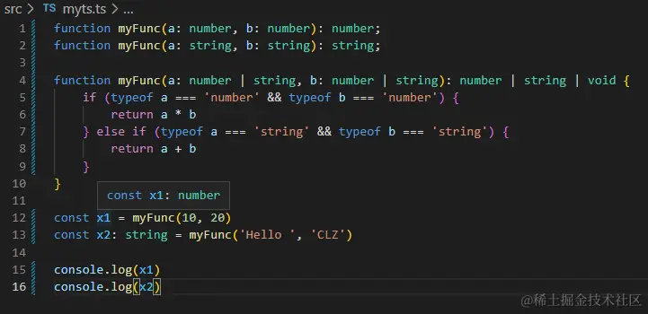 重载函数也不是很难实现,只需要在实际实现函数之前多次定义函数(定义时只是定义好输入和输出的类型)