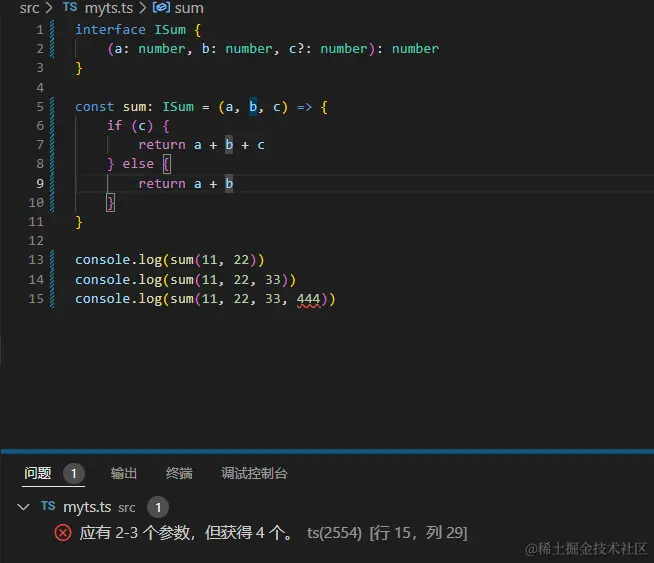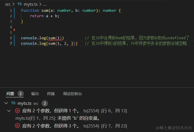 我们学过JS的话,应该会知道:JS的参数个数不符合函数定义时的,也不会报错。但是,在TS中,输入多的或少的参数都是不允许的