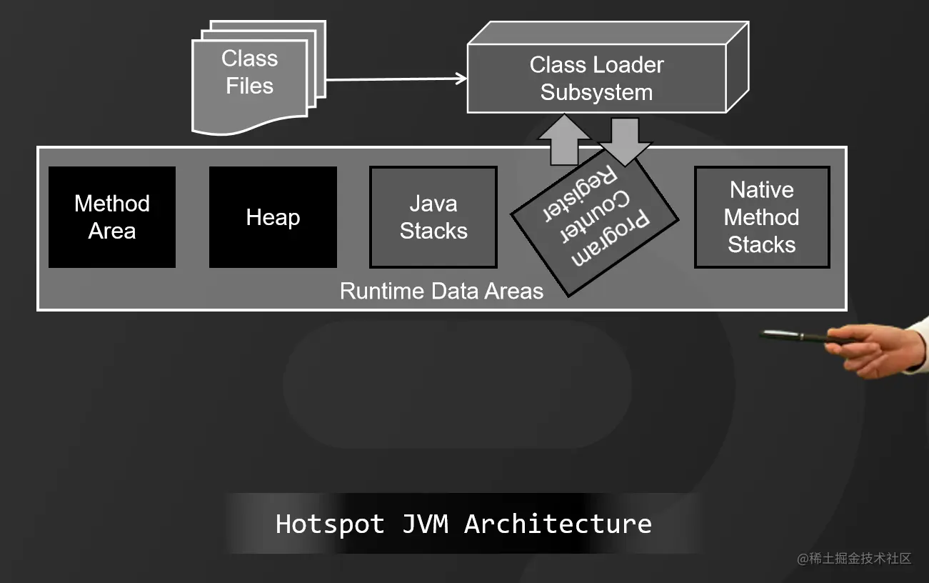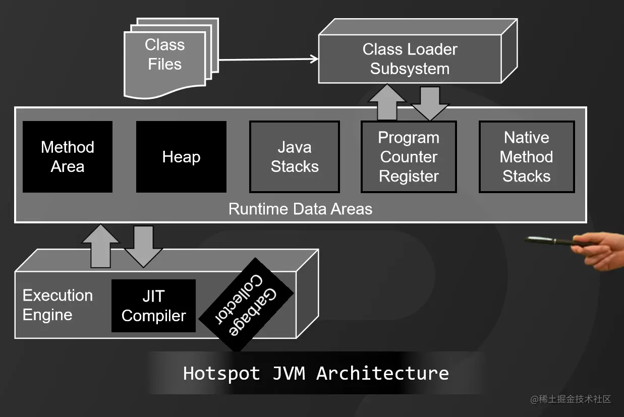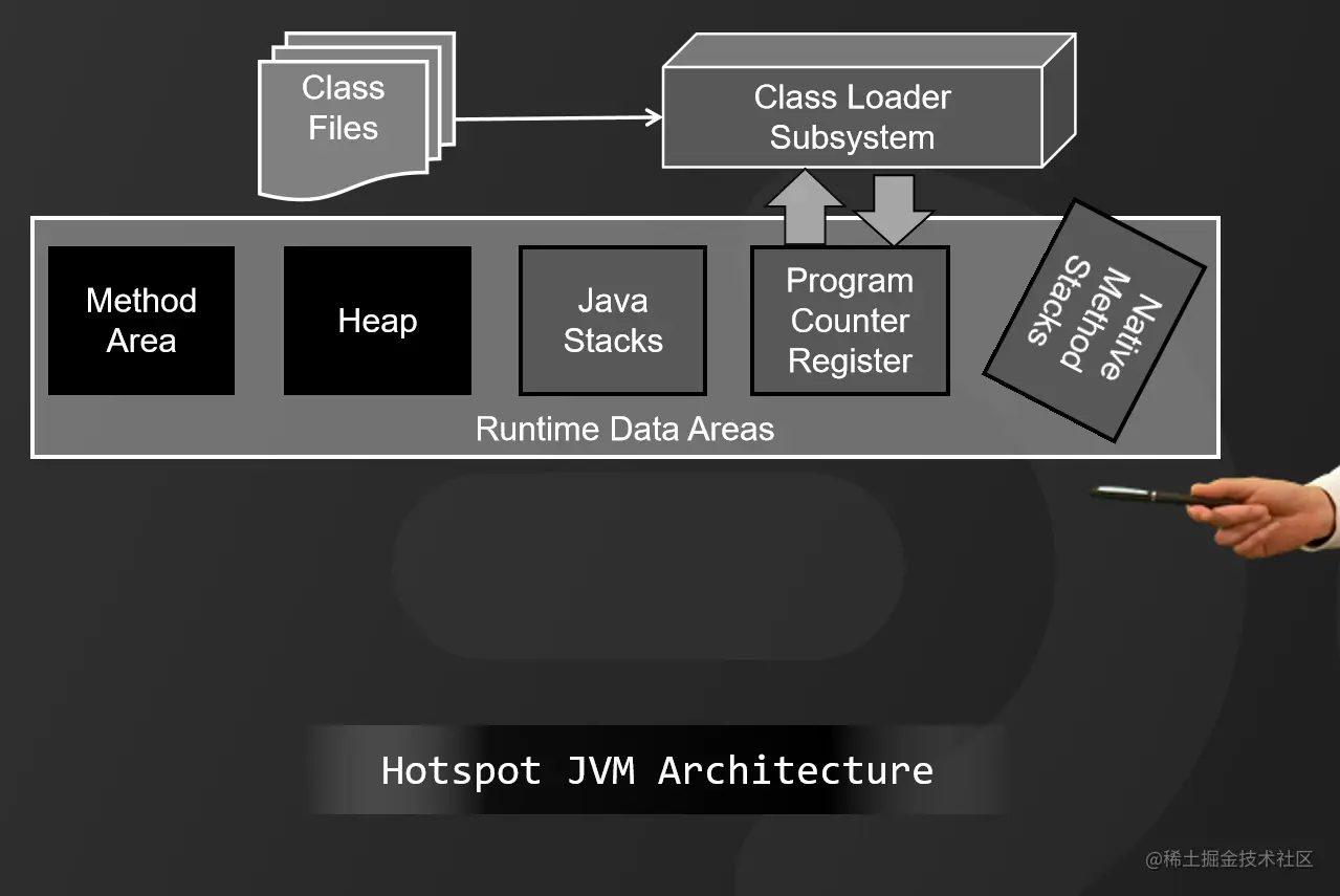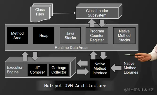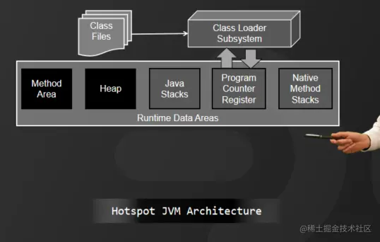 那么Hotspot JVM架构细节和运行机制又是怎样的呢?首先,将编译好的.class文件装载到类加载子系统,它的主要功能是查找并验证类文件、完成相关内存空间的分配和对象赋值。