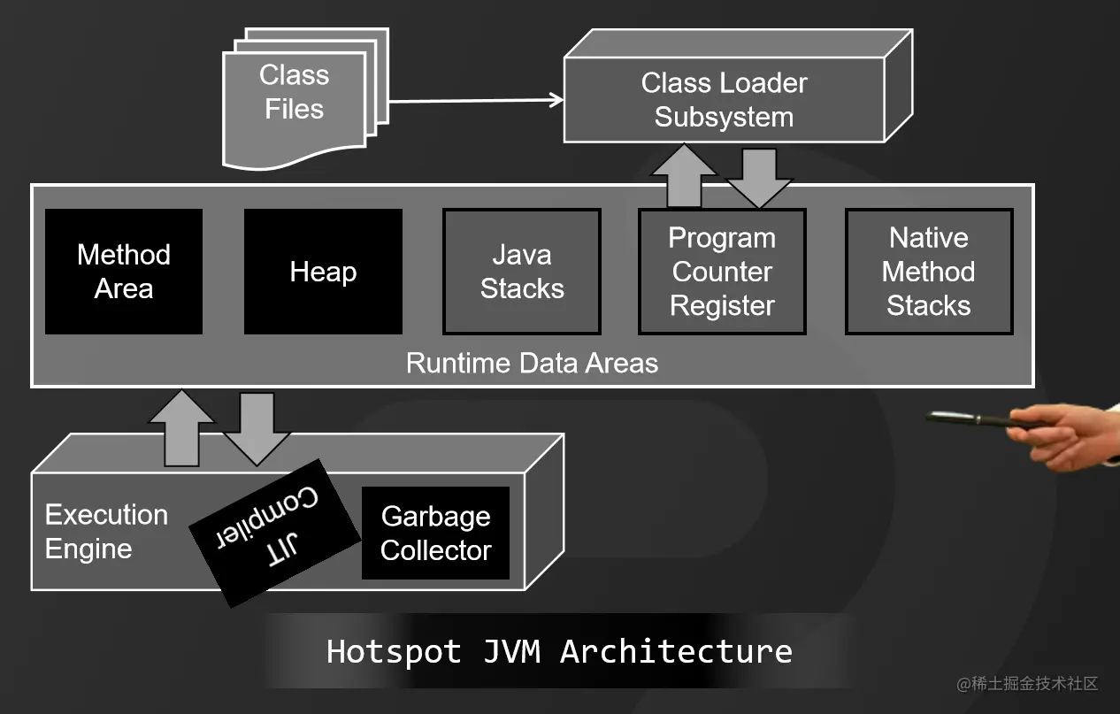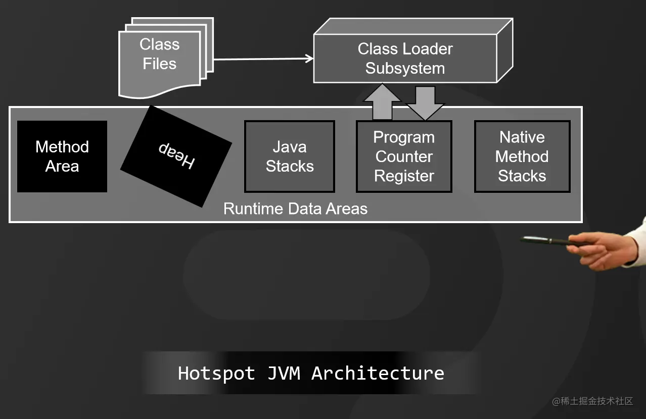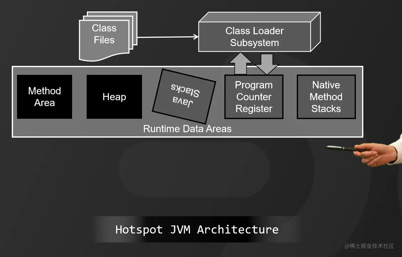 那么Hotspot JVM架构细节和运行机制又是怎样的呢?首先,将编译好的.class文件装载到类加载子系统,它的主要功能是查找并验证类文件、完成相关内存空间的分配和对象赋值。