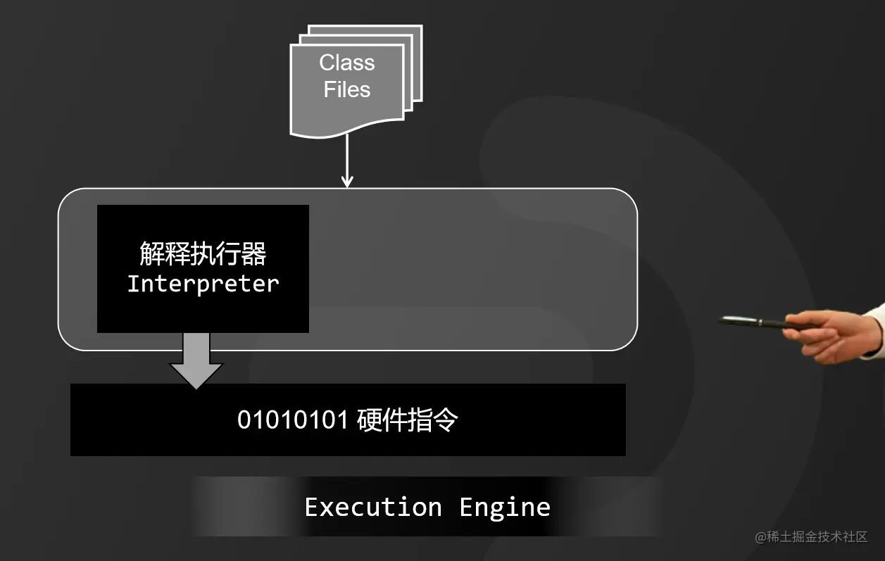 所谓解释执行就是直接将字节码作为源程序输入解释执行,不必等待编译器全部编译完成再执行,这样可以省去许多不必要的编译时间。