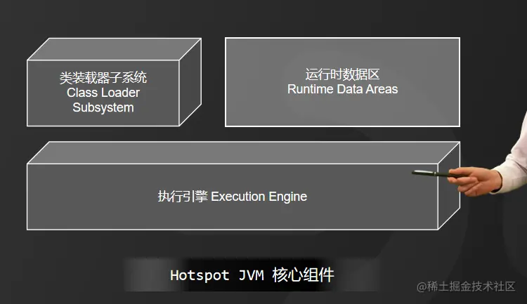 下面我给大家详细介绍一下JVM的架构设计,总体来看HotSpot VM 主要由3个核心部分组成: