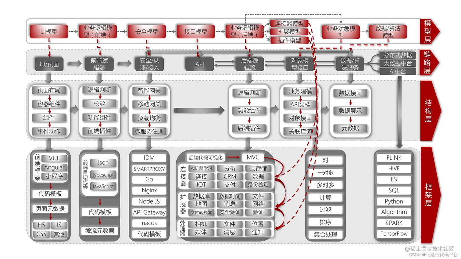 平台拥有松耦和合高内聚的微服务架构,低代码开发平台+服务中台+运维监控+数据治理+大数据平台+ DevOps+PaaS平台+容器和测试平台+专属服务。