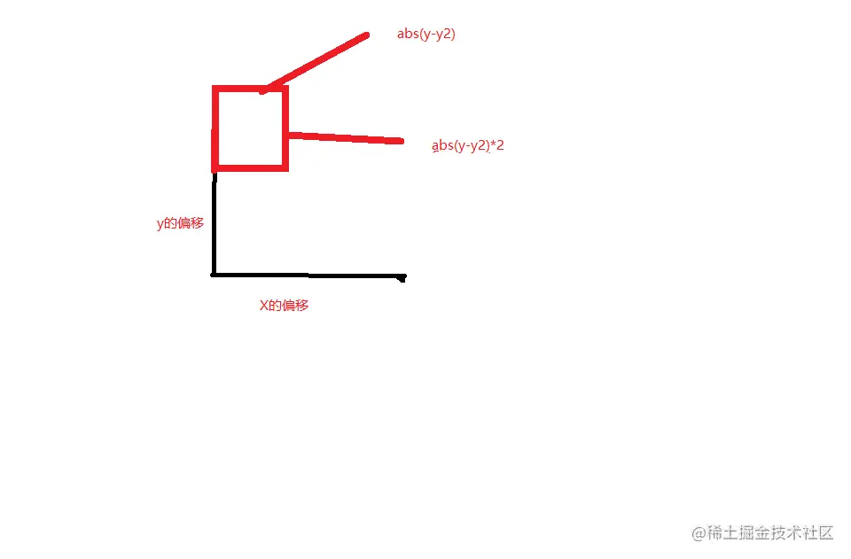 方框的宽度为abs(Y2-Y)*2,方框的长度我们可以大致认为时宽度的1/2,此时我们要画的矩形就是这样的: