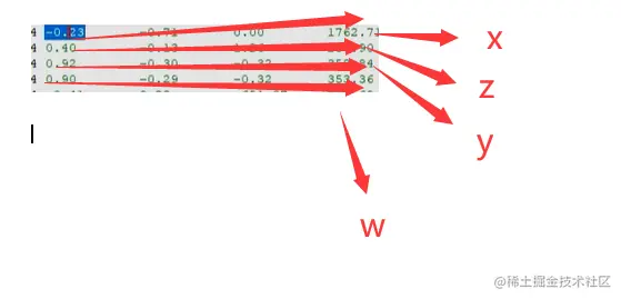 然后根据如下公式,可以得到4个值,我们只需要相对大小x,y,w