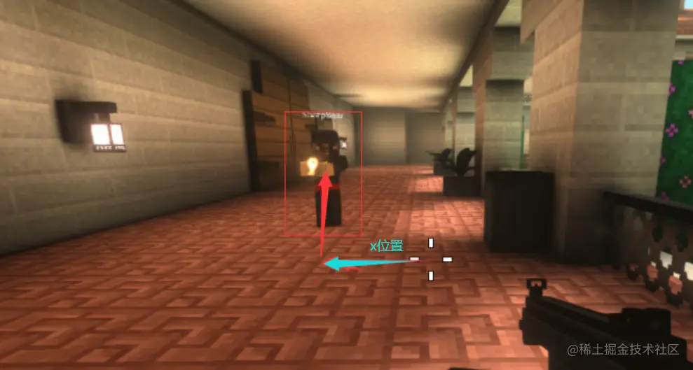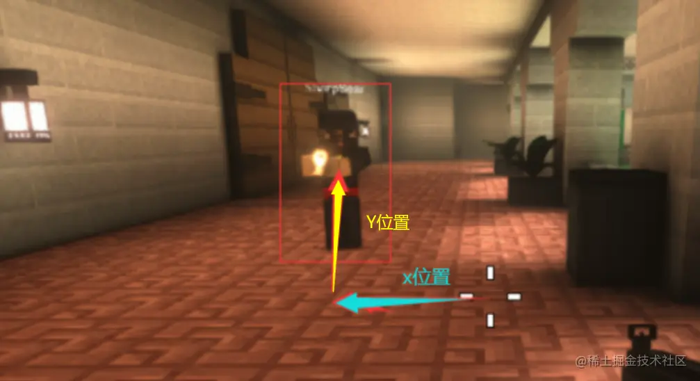 x位置=屏幕的中心+x的偏移,我们就可以得到人物在我们人物的,蓝色那条我们就知道了