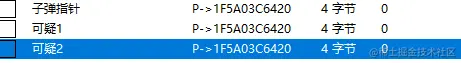 不妨将这两个地址记录下来,将我们的子弹指针复制几份,然后改个名字