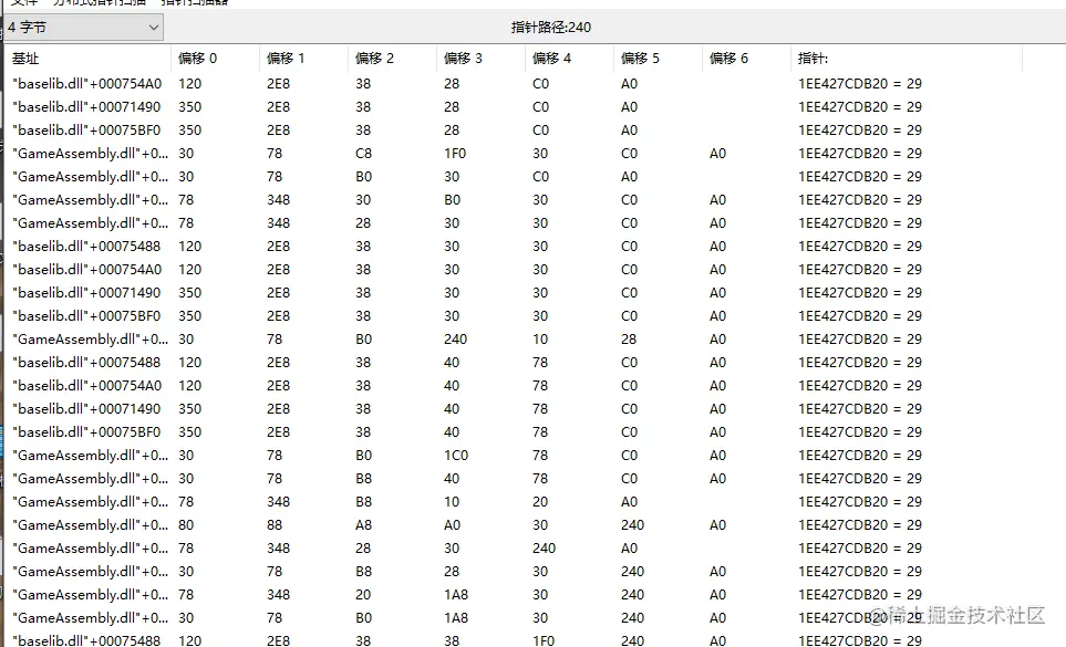 接下来使找敌人坐标,说实话我没啥好方法,这游戏血量在服务器上,本地很难入手,通过血量追人物数组没法下手。我叫了一个小伙伴进来,让他动,我进行搜索,跟前面坐标搜索基本类似。这里给出我的一个指针扫描结果。
