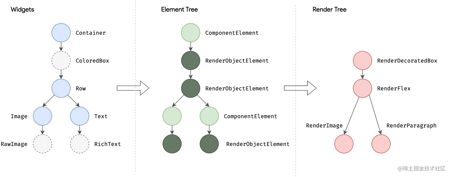 渲染就是将上面我们提到的widgets转换成用户肉眼可以感知的像素的过程。