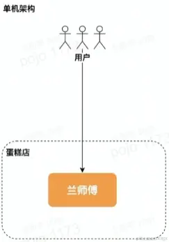 - 单体架构: 分布式部署,就是将一个师傅分为好几个师傅,功能一样!