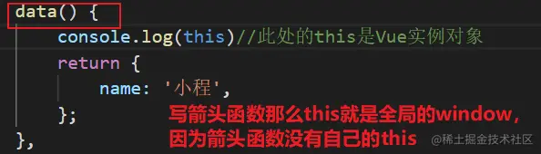 由Vue管理的函数,一定不要写箭头函数,一旦写了箭头函数,this就不是vue实例了