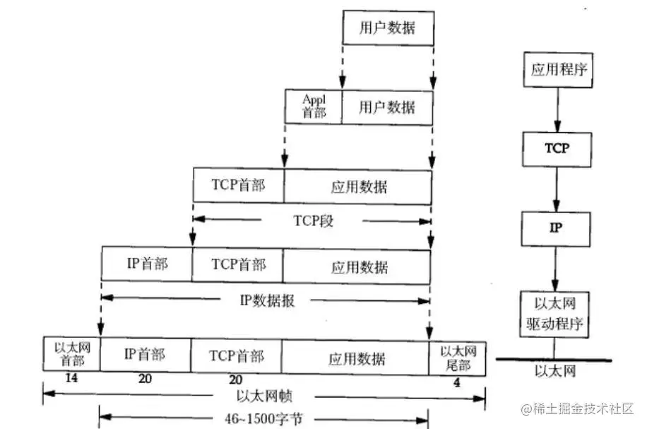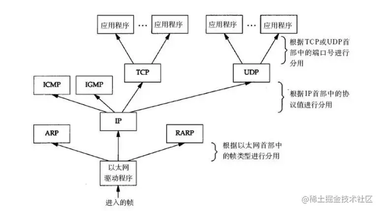数据包到达目标机器后经过相反的过程,最终被目标程序接收
