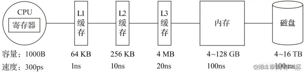 在计算机系统的体系结构中,存储系统是一种层次结构。典型服务器计算机的存储层次结构如图1所示。一个实用的经验告诉我们,存储媒介距离CPU越近,则访问数据的速度越快。