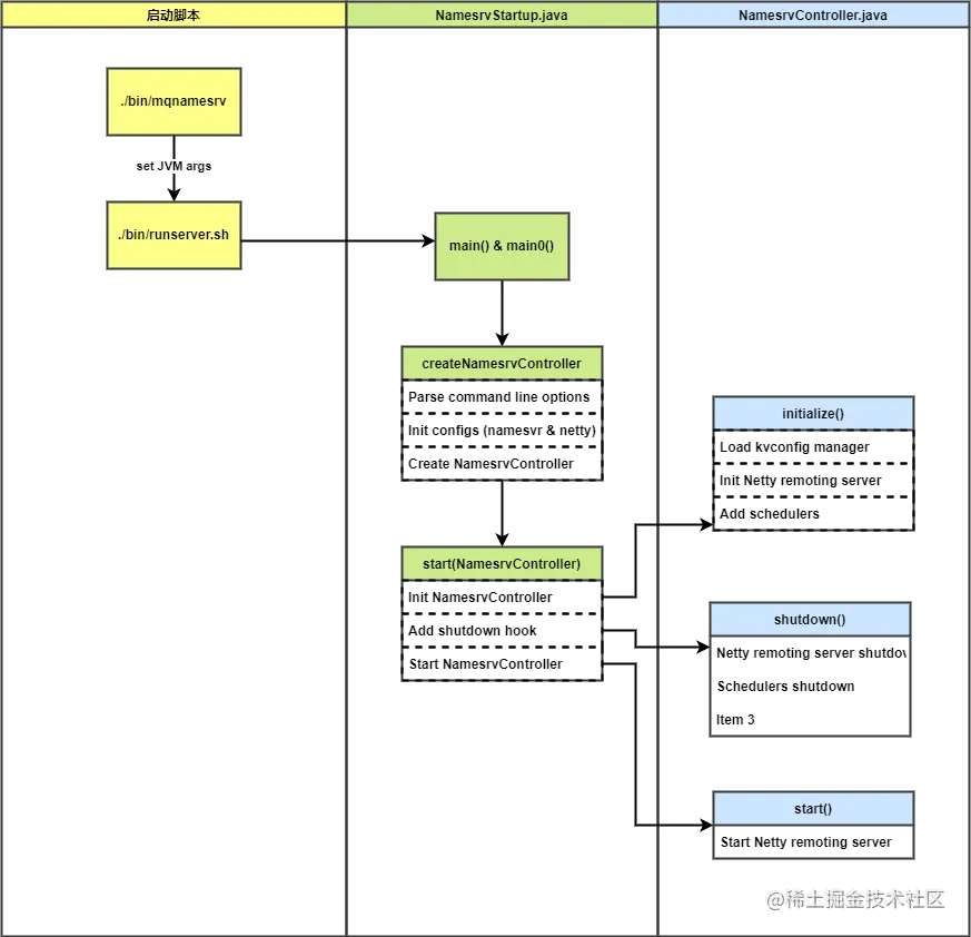 上图为 NameServer 启动流程的示意图。