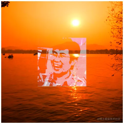 然后添加CSS样式,将混合模式声明在img元素上,第二个div元素定义了isolation属性。得到的效果如下图所示,左侧的祖先元素的背景会与图像混合,而右侧因为发生了隔离,所以就不会与背景混合。