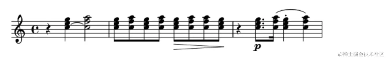 同数学表达式一样,音乐表达式可以进行嵌套,运算。从而创建出复杂的音乐。