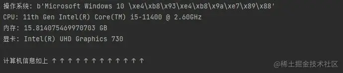 print("\n计算机信息如上 ↑ ↑ ↑ ↑ ↑ ↑ ↑ ↑ ↑ ↑ ↑ ↑")