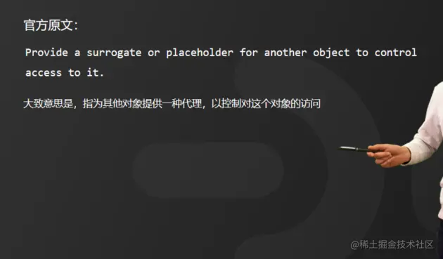 静态代理呢是代理模式的一种实现形态。代理模式的官方原文是这样的: