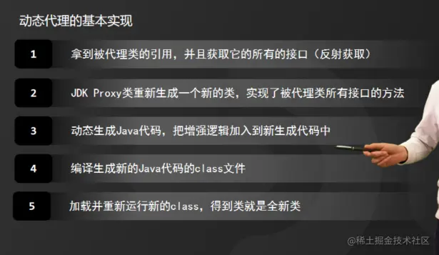 那在Java中动态代理的实现原理是怎样的呢?以JDK Proxy为例,我归纳为以下5个步骤: