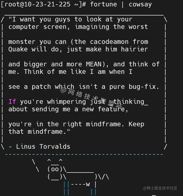 紧接着,我们结合cowsay命令给大家展示一下神奇的现象: