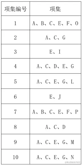 确定支持度阈值后,支持度低于这一标准的项将作为不常见的项被过滤掉,也就不会参与到后续的分析步骤中。 在上文的案例中,鸡蛋便是被过滤掉的不频繁项。