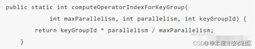 3.keyby之后的处理算子:建议最大并行度为此算子并行度的整数倍,这样可以使每个算子上的keyGroup是相同的,从而使得数据相对均匀shuffle到下游算子,如下图为shuffle策略