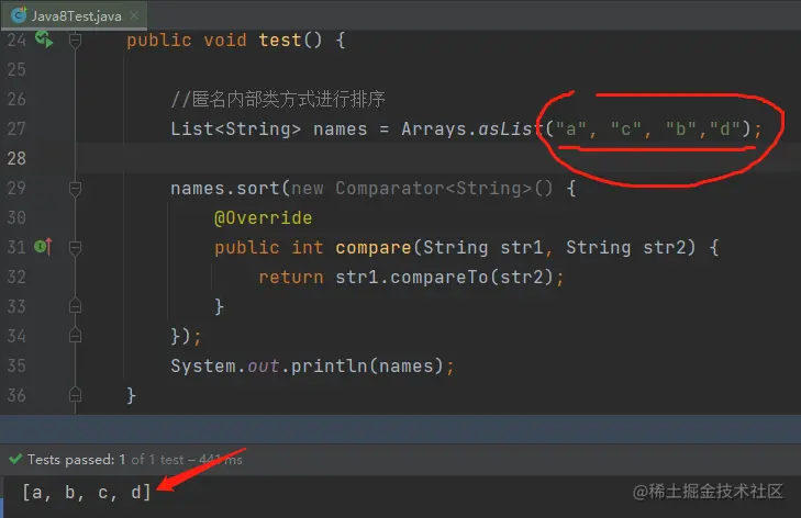 List<String> names = Arrays.asList("a", "c", "b","d");