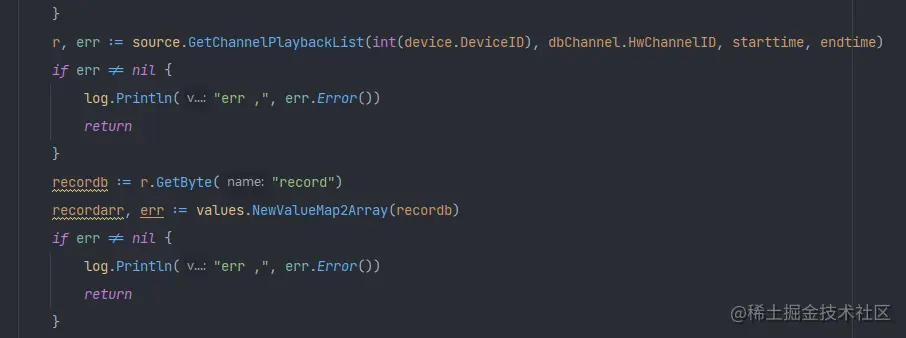 设计逻辑:添加如下代码,根据设备的接入类型进行判断,如果是华为SDK接入的方式,则调用华为SDK录像查询的API,然后根据前端传入的具体日期,进行格式转化,再传入给设备通道,然后进行查询设备录像。
