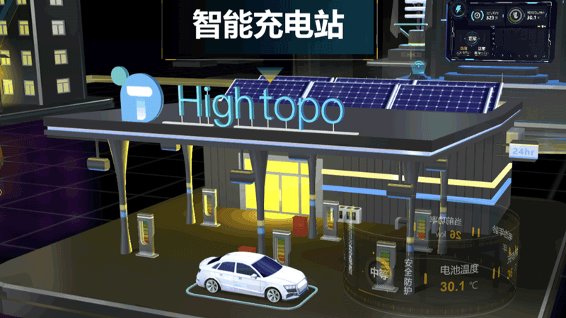 智能电动汽车充电或智能充电是指电动汽车与充电设备共享数据连接,充电设备与充电运营商共享数据连接的系统。与传统充电设备不同,智能充电系统会智能监控、管理和限制其设备的使用,以优化能源消耗。通过 HT for Web 以贴图的形式设计出轻量化的智能充电站,可摆脱硬件设备的限制,实现充电桩的随时监控。模拟车辆进站的充电过程,显示智能充电桩的充电次数、当前功率、充电量、电池年限;当车辆电磁出现故障时,出现闪烁的红色框提示车站运维人员。