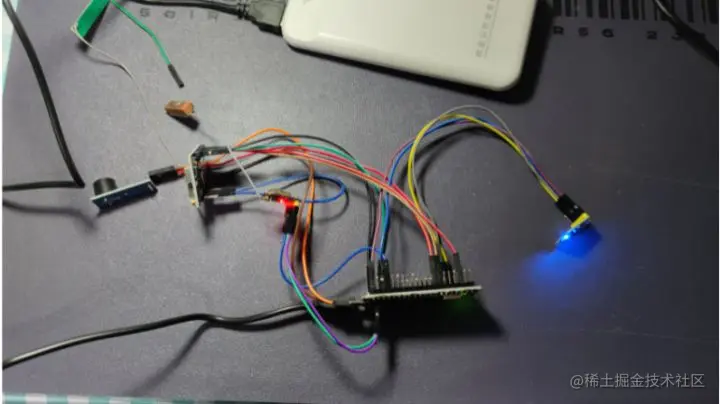 为了快速验证方案的可行性,这里采用现成的模块采用杜邦线连接完成整个预想的功能设计。