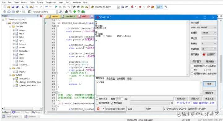 (2)SIM800C的TX脚接单片机的RX脚
