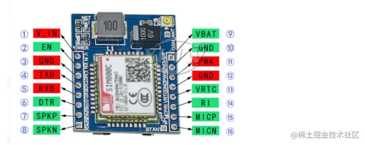 (4)SIM800C的第11个引脚(PWK)和12个引脚(GND)短接接在一起,才可以开机。