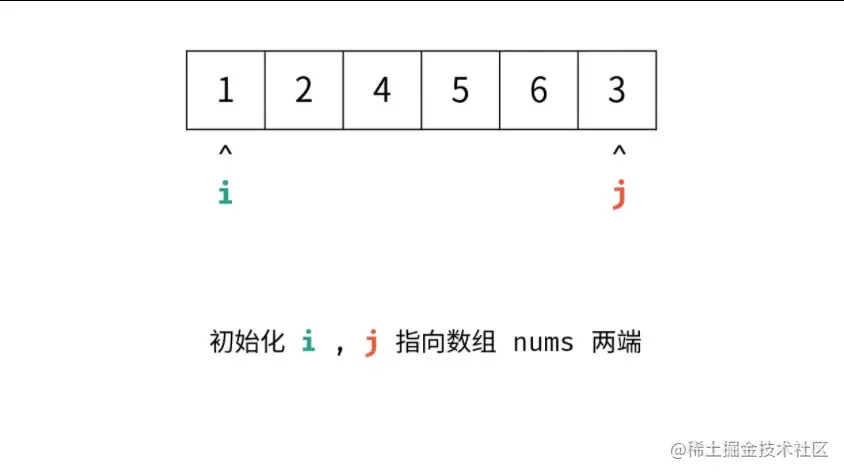初始化: i , j 双指针,分别指向数组 nums 左右两端;