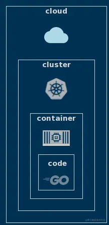 想想看,云原生安全边界由4个不同的层次组成。从外层到最里面的一层。