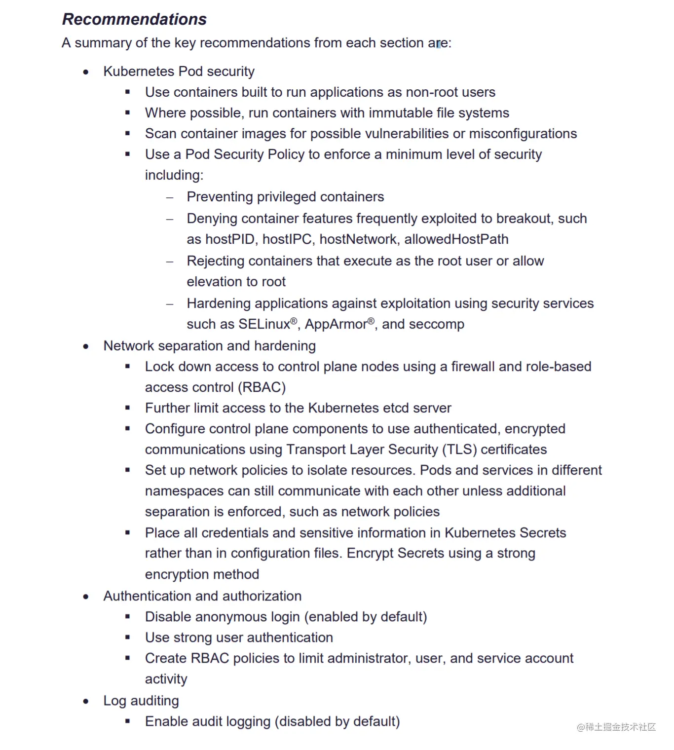 这些建议抓住了Kubernetes攻击面的关键方面。