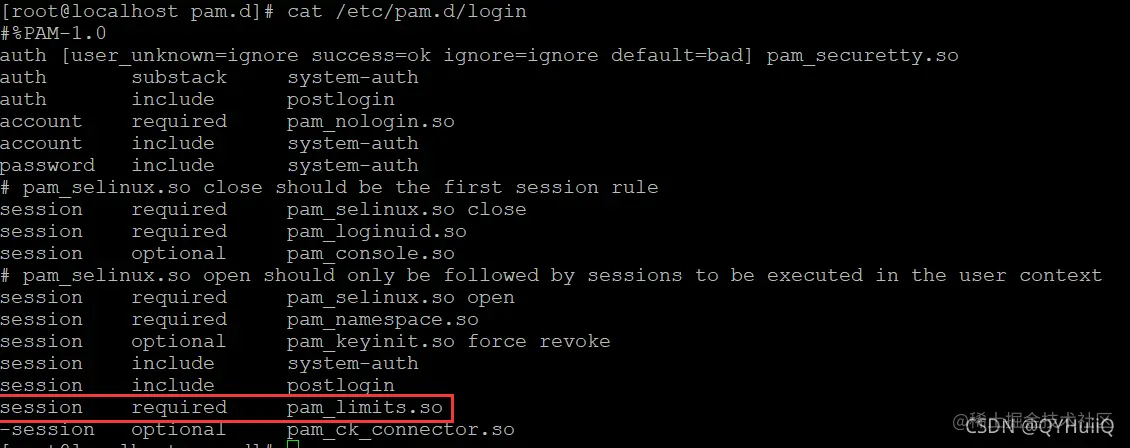 - 要使配置生效,需要编辑文件/etc/pam.d/login,添加如下配置: