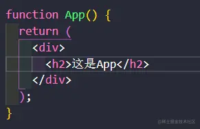 这段代码,这里就是渲染的内容,开启严格模式之后有一个自闭合的app组件,他是引入的一个函数式编程的tsx组件。也就是上面的App.tsx。把App()稍微修改一下。