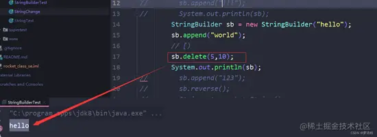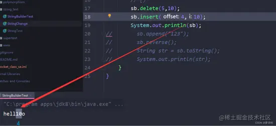b.删除指定范围的数据,delete(int start,int end);删除从start开始,到end之前的所有内容,左闭右开区间