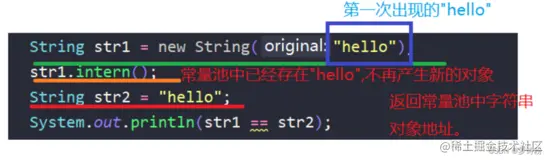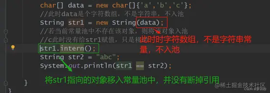 此时就将str1指向的对象手动入池了,池中已有该对象,直接让str1指向该对象